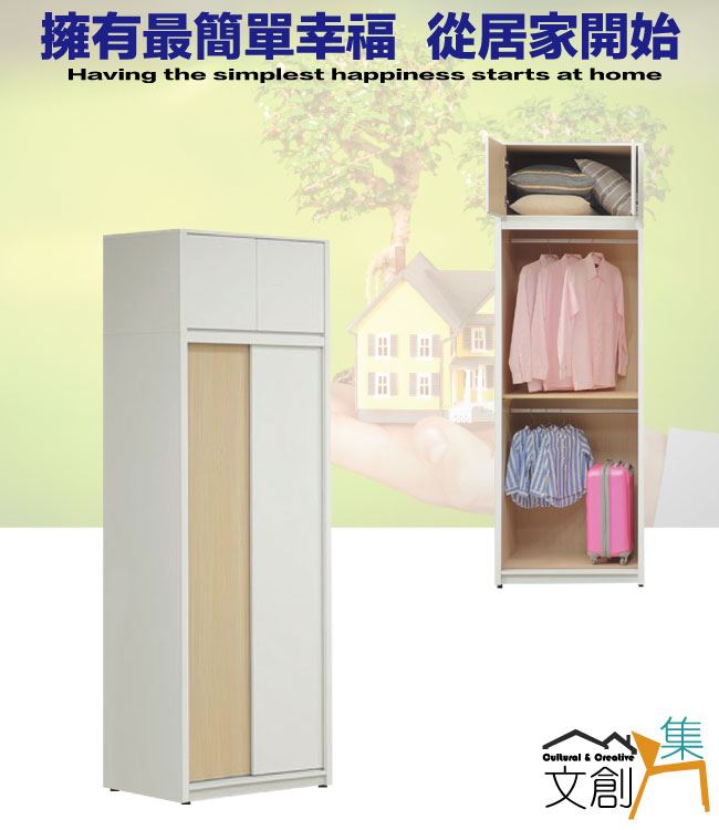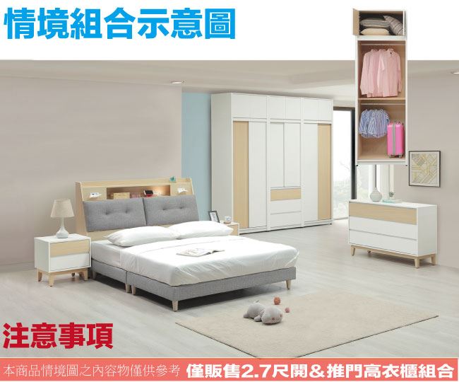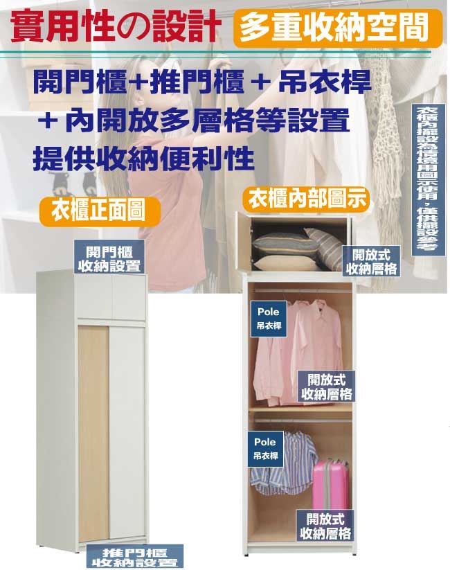 【綠家居】歐瑞雙色2.7尺開&推門加高衣櫃組合