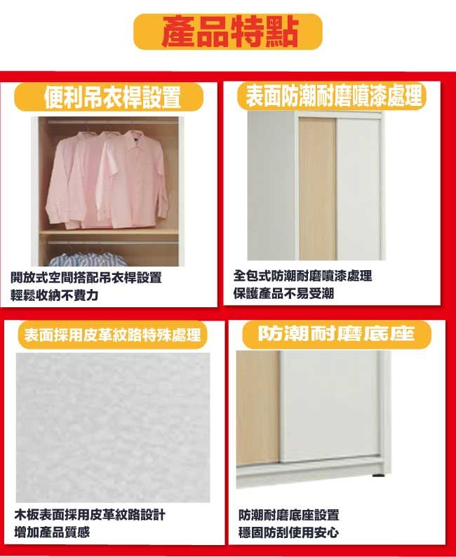 商 品 介 紹 | 【綠家居】歐瑞雙色2.7尺開&推門加高衣櫃組合 木紋雙色系+安心材質製造,使用放心+搭配居家更便利,採用防蛀木心板+防潮耐磨底座+防夾手緩衝門片五金+白色面板外層採用皮革紋路特殊處理等安心材質製造 ,外層採用防潮耐磨噴漆處理搭配採用開門櫃&推門櫃+雙吊衣桿+內開放層格等收納空間設計,全由專人配送到家,專業安心服務,替你省下更多時間! 【商品特色】 木紋雙色系+安心材質製造,使用放心+搭配居家更便利 採用防蛀木心板+防潮耐磨底座+防夾手緩衝門片五金+白色面板外層採用皮革紋路特殊處理等安心材質製造 搭配採用開門櫃&推門櫃+雙吊衣桿+內開放層格等收納空間設計 此商品不需要DIY組立,此商品為組立後之成品 品質保證、專業設計、貼心服務 全由專人配送到家,專業安心服務,替您省下更多時間