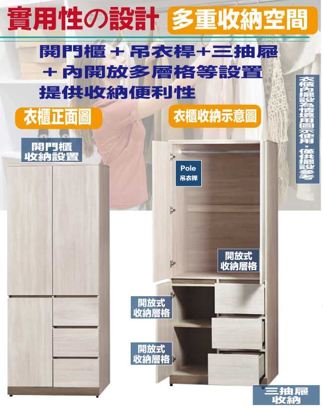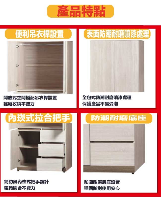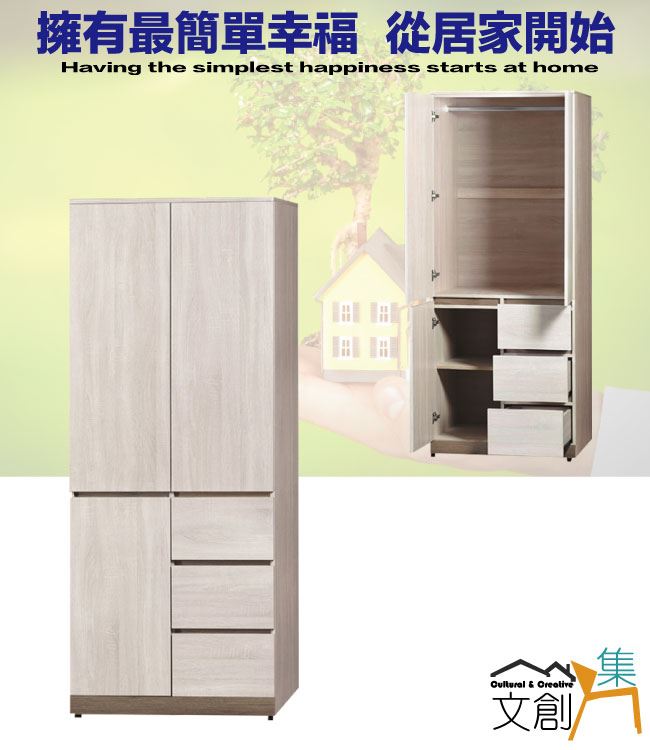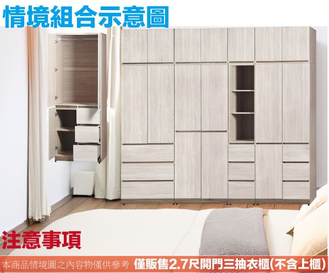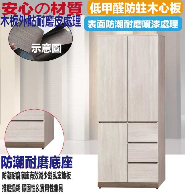 【綠家居】歐瑞雙色2.7尺三門三抽衣櫃