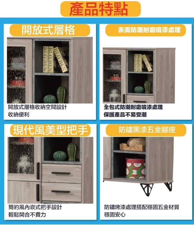 商品 介紹 | 【綠家居】格魯雙色2.5尺二門二抽展示櫃/收納櫃 木紋雙色系+現代簡約風格+安心材質製造,使用放心+搭配居家更便利,整體採用防蛀木心板+防鏽五金腳座+五金滑軌結構+防夾手緩衝門片五金等材質搭配外層採用優莉坦耐磨全包式噴漆處理 ,採用開門櫃+二抽屜+開放式收納等收納空間設計,全由專人配送到家,專業安心服務,替你省下更多時間! 【商品特色】 木紋雙色系+現代簡約風格+安心材質製造,使用放心+搭配居家更便利 防蛀木心板+防鏽五金腳座+五金滑軌結構+防夾手緩衝門片五金等材質 採用開門櫃+二抽屜+開放式收納等收納空間設計 此商品不需要DIY組立,此商品為組立後之成品 品質保證、專業設計、貼心服務 全由專人配送到家,專業安心服務,替您省下更多時間 |