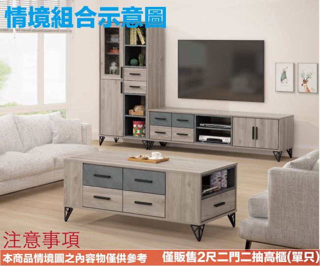 【綠家居】格魯雙色2.5尺二門二抽展示櫃/收納櫃