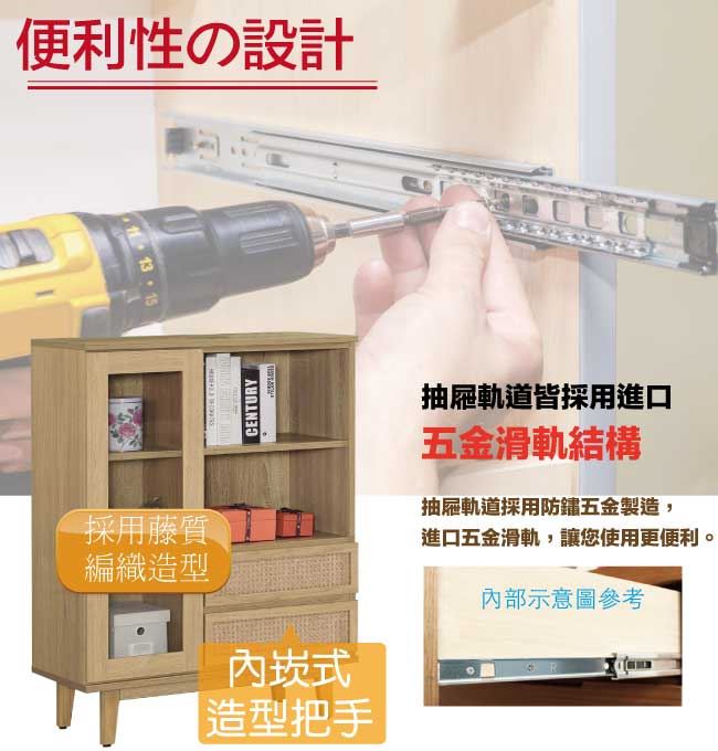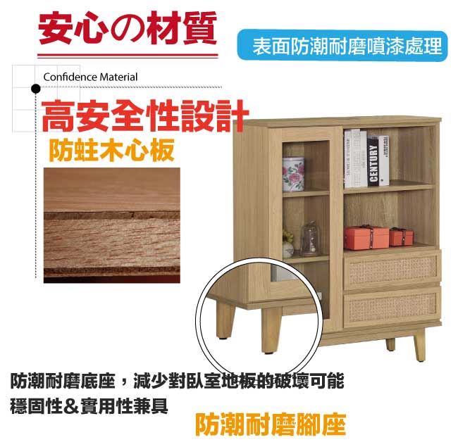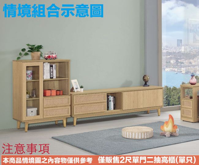 【綠家居】神奈川編織紋2尺單門二抽展示櫃/收納櫃