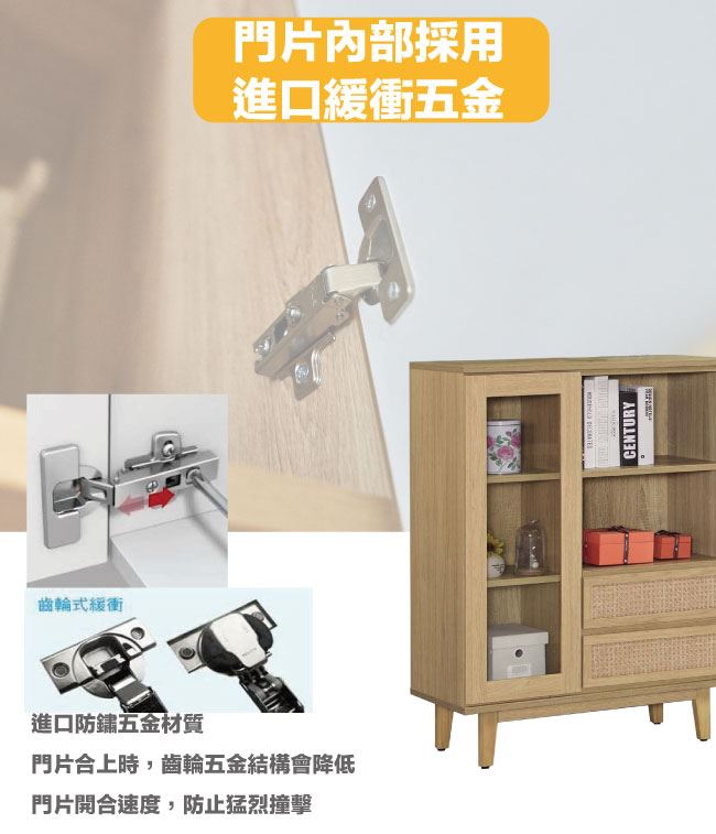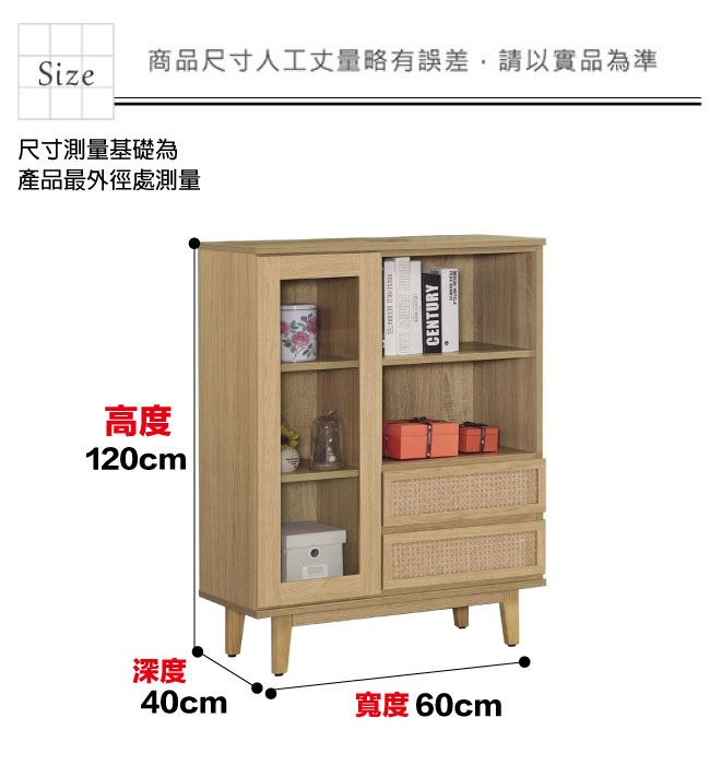 材質 | ◆產品名稱:【綠家居】神奈川編織紋2尺單門二抽展示櫃/收納櫃 尺寸:(寬)60x(深)40(高)120公分 ◆材質: 材質:防蛀木心板+防潮耐磨腳座(腳高16cm)+五金滑軌結構+藤質編織網格+防夾手緩衝門片五金 噴漆:防潮耐磨噴漆處理