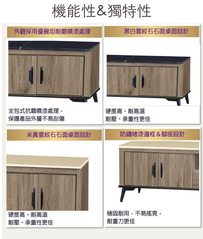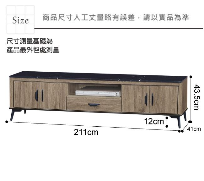 材質 | ◆產品名稱: 【綠家居】凱梅 四門7尺石面單抽電視櫃(二色石面可選) 尺寸:(寬)211x(深)41x(高)43.5/公分 ◆材質: 材質:防蛀木心板+黑鐵砂框架&腳座+五金滑軌結構+12mm雲紋石面板 噴漆:防潮耐磨噴漆處理