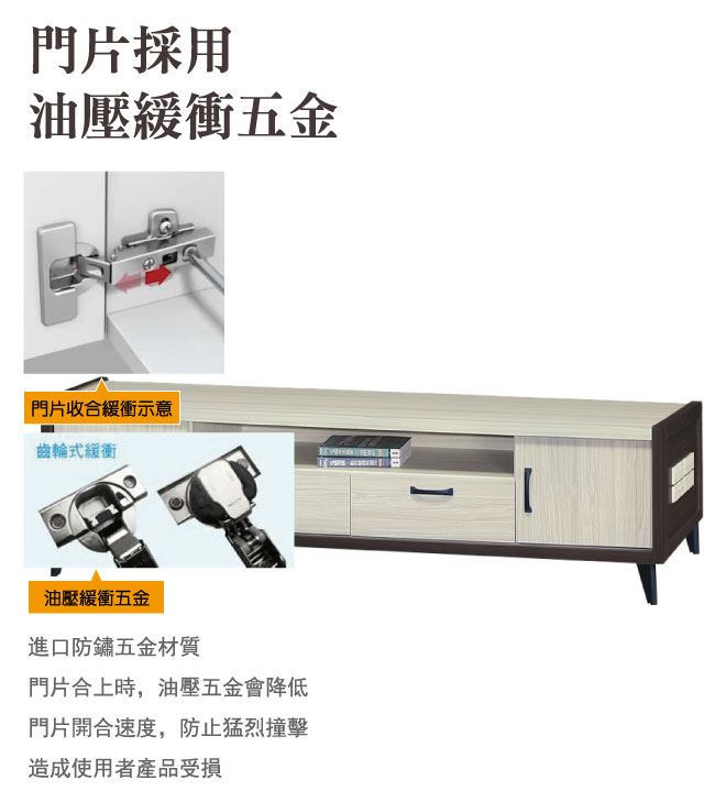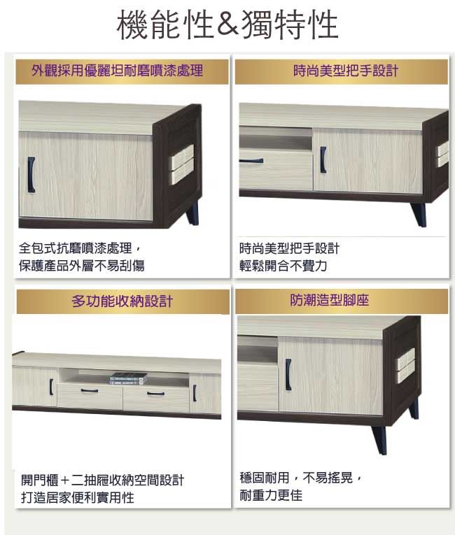 商品介紹 | 【綠家居】塞加 雙色7尺二門二抽電視櫃 木紋雙色系+現代簡約風格+安心材質製造,整體採用防蛀木心板+防潮黑漆腳座+五金滑軌結構+防夾手緩衝門片五金等安心材質製造,產品外層採用防潮耐磨噴漆處理搭配採用開門櫃+二抽屜+開放式收納等收納空間設計,全由專人配送到家,專業安心服務,替你省下更多時間! 【商品特色】 木紋雙色系+現代簡約風格+安心材質製造,使用放心+搭配居家更便利 採用防蛀木心板+防潮黑漆腳座+五金滑軌結構+防夾手緩衝門片五金等安心材質製造 產品外層採用防潮耐磨噴漆處理 搭配採用開門櫃+二抽屜+開放式收納等收納空間設計 此商品不需要DIY組立,此商品為組立後之成品 品質保證、專業設計、貼心服務 全由專人配送到家,專業安心服務,替您省下更多時間 |