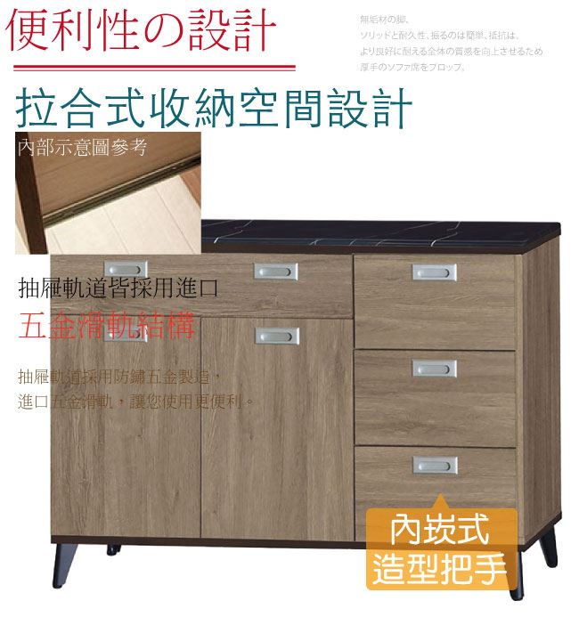 商品介紹 | 【綠家居】安貝斯 灰橡3.9尺黑白雲紋石面餐櫃 灰橡木紋色系+現代簡約風格+安心材質製造,整體採用防蛀木心板+黑鐵砂腳座+五金滑軌結構+12mm黑白雲紋石面板+防夾手緩衝門片五金等安心材質製造,產品外層採用防潮耐磨噴漆處理搭配採用開門櫃+四抽屜+開放式收納等收納空間設計,全由專人配送到家,專業安心服務,替你省下更多時間! 【商品特色】 灰橡木紋色系+現代簡約風格+安心材質製造,使用放心+搭配居家更便利 採用防蛀木心板+黑鐵砂腳座+五金滑軌結構+12mm黑白雲紋石面板+防夾手緩衝門片五金等安心材質製造 產品外層採用防潮耐磨噴漆處理 搭配採用開門櫃+四抽屜+開放式收納等收納空間設計 此商品不需要DIY組立,此商品為組立後之成品 品質保證、專業設計、貼心服務 全由專人配送到家,專業安心服務,替您省下更多時間 |