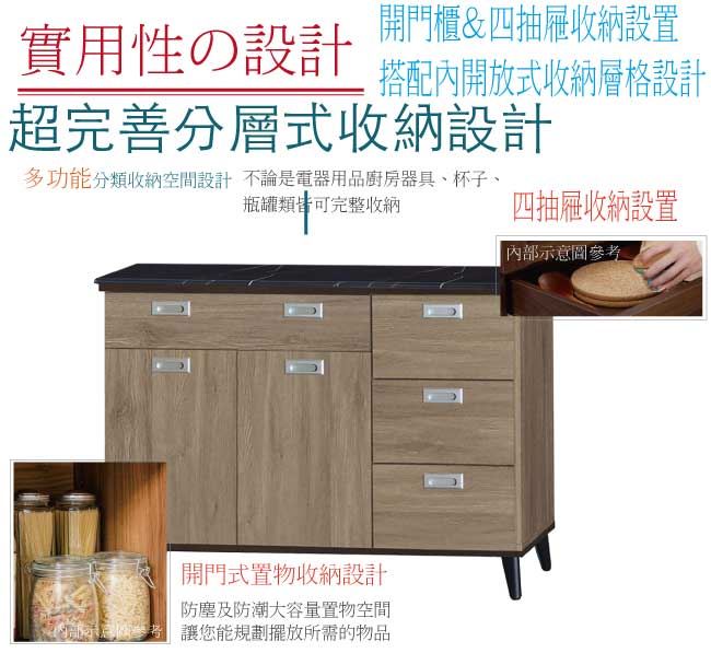 【綠家居】安貝斯 灰橡3.9尺黑白雲紋石面餐櫃