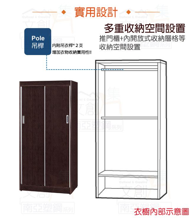 商品介紹 | 【綠家居】米斯利 環保3.2尺南亞塑鋼推門高衣櫃/收納櫃 產品採用第一品牌-台製南亞塑鋼舒美板材質,整體材質採用防水+防燃+無甲醛安心塑鋼材質製造 ,搭配推門櫃+吊衣桿+內開放式收納等便利設計,防止受潮,增加支撐力,堅固不會塌陷,全由專人配送到家,專業安心服務,替你省下更多時間! 【商品特色】 現代雙色系設計+安心材質製造,使用放心+搭配居家更便利 搭配推門櫃+吊衣桿+內開放式收納等便利設計 防水+防燃+無甲醛安心塑鋼材質,結構牢固耐用,也不用擔心蟲蛀的煩惱,使用放心 產品採用第一品牌-台製南亞塑鋼舒美板材質 此商品不需要DIY組立,此商品為組立後之成品 品質保證、專業設計、貼心服務 全由專人配送到家,專業安心服務,替你省下更多時間 請注意:本公司所販售南亞塑鋼產品為保障消費者權益及維護產品品質的考量,產品皆為接單後生產組裝(配送產品為已組裝完成之半成品),等待週期約10-14天工作天(不含實際配送日期等待天數),請您訂購前務必事先確認是否可以等待,避免引發不必要之消費爭議 ,如有不便之處請見諒! 請注意:本產品因接單後需提前組裝才出貨,外包裝並非裝箱處理,而是採用膠膜作為外包裝保護使用,產品本公司保證皆為全新產品,並非二手產品出貨,另外因塑鋼板材為亮面漆塗裝處理,板材本就容易受粉塵及搬運過程造成輕微刮傷,絕不會影響產品安全結構。 其中以胡桃色系產品因色彩互相對比關係,周邊如有輕微刮傷較稍微明顯,收到產品後如有週邊輕微小刮傷,在不影響產品正面外觀與美觀下,請多包涵並體諒能不吹毛求疵!我們也會做好相關售後服務!謝謝!