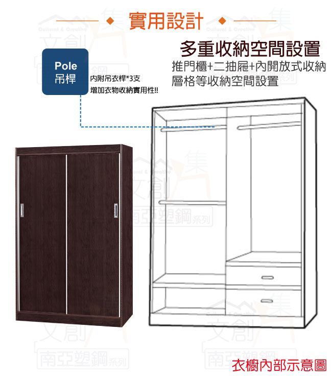 商品介紹 | 【綠家居】米斯利 環保4.2尺南亞塑鋼推門二抽高衣櫃/收納櫃 產品採用第一品牌-台製南亞塑鋼舒美板+五金滑軌結構等材質,整體材質採用防水+防燃+無甲醛安心塑鋼材質製造 ,搭配推門櫃+吊衣桿+二抽屜+內開放式收納等便利設計,防止受潮,增加支撐力,堅固不會塌陷,全由專人配送到家,專業安心服務,替你省下更多時間! 【商品特色】 現代雙色系設計+安心材質製造,使用放心+搭配居家更便利 搭配推門櫃+二抽屜+吊衣桿+內開放式收納等便利設計 防水+防燃+無甲醛安心塑鋼材質,結構牢固耐用,也不用擔心蟲蛀的煩惱,使用放心 產品採用第一品牌-台製南亞塑鋼舒美板材質 此商品不需要DIY組立,此商品為組立後之成品 品質保證、專業設計、貼心服務 全由專人配送到家,專業安心服務,替你省下更多時間 請注意:本公司所販售南亞塑鋼產品為保障消費者權益及維護產品品質的考量,產品皆為接單後生產組裝(配送產品為已組裝完成之半成品),等待週期約10-14天工作天(不含實際配送日期等待天數),請您訂購前務必事先確認是否可以等待,避免引發不必要之消費爭議 ,如有不便之處請見諒! 請注意:本產品因接單後需提前組裝才出貨,外包裝並非裝箱處理,而是採用膠膜作為外包裝保護使用,產品本公司保證皆為全新產品,並非二手產品出貨,另外因塑鋼板材為亮面漆塗裝處理,板材本就容易受粉塵及搬運過程造成輕微刮傷,絕不會影響產品安全結構。 其中以胡桃色系產品因色彩互相對比關係,周邊如有輕微刮傷較稍微明顯,收到產品後如有週邊輕微小刮傷,在不影響產品正面外觀與美觀下,請多包涵並體諒能不吹毛求疵!我們也會做好相關售後服務!謝謝!