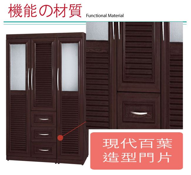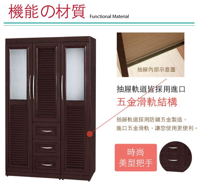 【綠家居】谷利 環保4.5尺南亞塑鋼三門百葉三抽高衣櫃/收納櫃