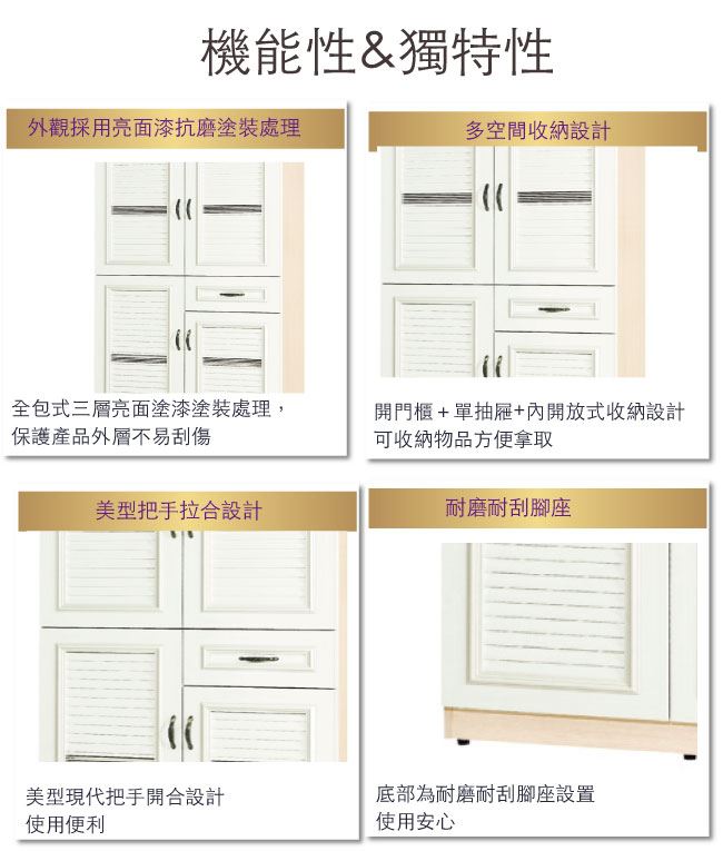 商品介紹 | 【綠家居】多比 環保3尺南亞塑鋼四門單抽高鞋櫃 產品採用第一品牌-台製南亞塑鋼舒美板+五金滑軌結構材質,整體材質採用防水+防燃+無甲醛安心塑鋼材質製造 ,搭配開門櫃+單抽屜+內開放式多層格等便利收納空間設計,防止受潮,增加支撐力,堅固不會塌陷,全由專人配送到家,專業安心服務,替你省下更多時間! 【商品特色】 時尚雙色系設計+安心材質製造,使用放心+搭配居家更便利 開門櫃+單抽屜+內開放式多層格等便利收納空間設計 防水+防燃+無甲醛安心塑鋼材質,結構牢固耐用,也不用擔心蟲蛀的煩惱,使用放心 產品採用第一品牌-台製南亞塑鋼舒美板+五金滑軌結構等材質 此商品不需要DIY組立,此商品為組立後之成品 品質保證、專業設計、貼心服務 全由專人配送到家,專業安心服務,替你省下更多時間 請注意:本公司所販售南亞塑鋼產品為保障消費者權益及維護產品品質的考量,產品皆為接單後生產組裝(配送產品為已組裝完成之半成品),等待週期約10-14天工作天(不含實際配送日期等待天數),請您訂購前務必事先確認是否可以等待,避免引發不必要之消費爭議 ,如有不便之處請見諒! 請注意:本產品因接單後需提前組裝才出貨,外包裝並非裝箱處理,而是採用膠膜作為外包裝保護使用,產品本公司保證皆為全新產品,並非二手產品出貨,另外因塑鋼板材為亮面漆塗裝處理,板材本就容易受粉塵及搬運過程造成輕微刮傷,絕不會影響產品安全結構。 其中以胡桃色系產品因色彩互相對比關係,周邊如有輕微刮傷較稍微明顯,收到產品後如有週邊輕微小刮傷,在不影響產品正面外觀與美觀下,請多包涵並體諒能不吹毛求疵!我們也會做好相關售後服務!謝謝! |