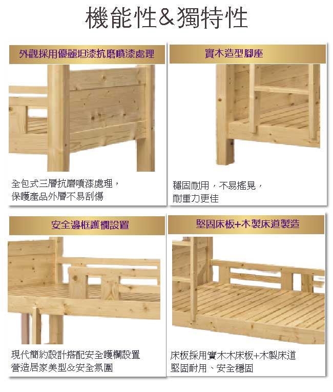 【綠家居】康羅斯 松木紋3.5尺單人實木雙層床台組合