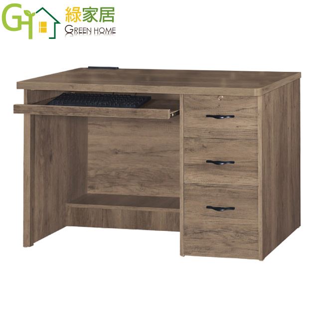 【綠家居】海海韻4尺三抽鍵盤書桌(桌面USB充電插座設置)