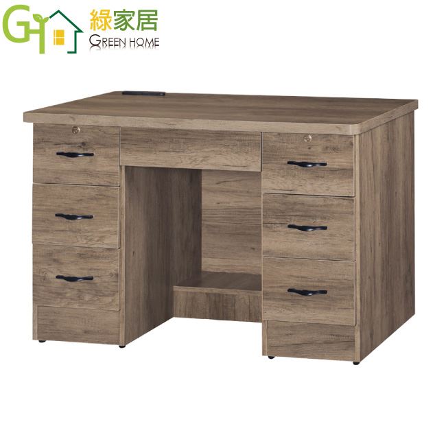 【綠家居】海韻4尺七抽書桌(桌面USB充電插座設置)