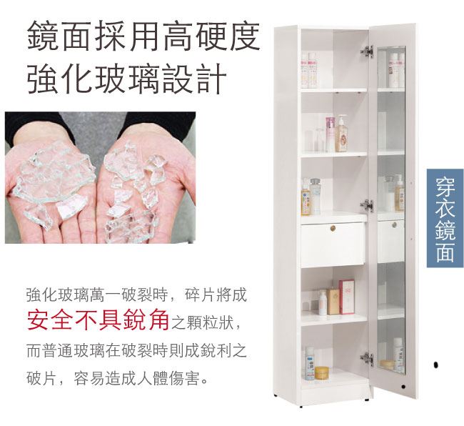 - 防蛀木心板+強化玻璃鏡面