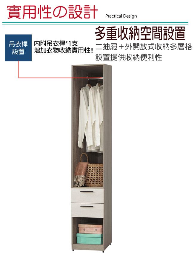 【綠家居】歐倫勒 雙色1.3尺二抽開放式衣櫃/收納櫃