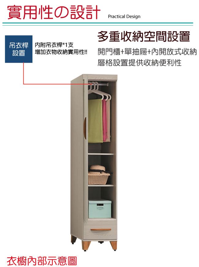 【綠家居】法尼莫 時尚1.3尺單門單抽衣櫃/收納櫃(二色可選)