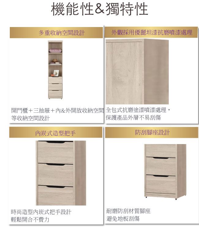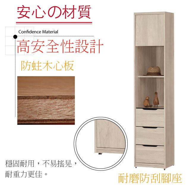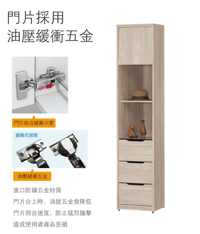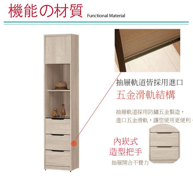 材質 | ◆產品名稱: 【綠家居】查迪爾 橡木紋1.5尺單門三抽中空衣櫃 產品尺寸: 尺寸:(寬)45.5x(深)55x(高)202/公分 ◆材質: 材質:防蛀木心板+防潮耐磨腳座 材質:防夾手緩衝門片五金+五金滑軌結構 塗漆:優利坦全包式耐磨噴漆處理