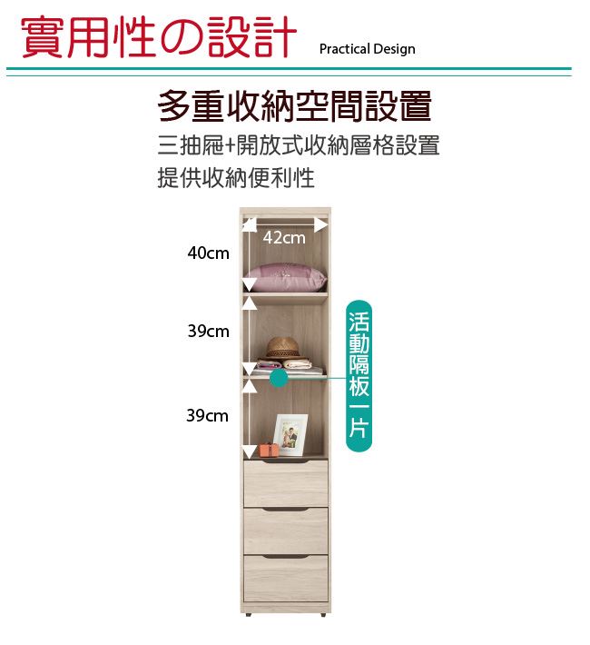 【綠家居】查迪爾 橡木紋1.5尺單門三抽中空衣櫃