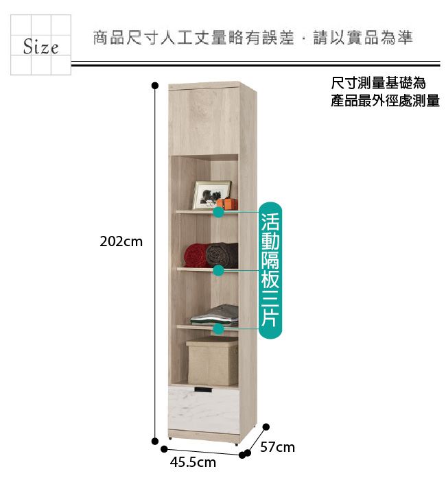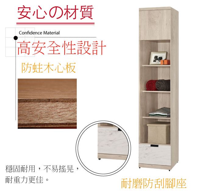 材質 | ◆產品名稱: 【綠家居】查森特 雙色1.5尺單門單抽中空衣櫃 產品尺寸: 尺寸:(寬)45.5x(深)57x(高)202/公分 ◆材質: 材質:防蛀木心板+防潮耐磨腳座 材質:防夾手緩衝門片五金+五金滑軌結構 塗漆:優利坦全包式耐磨&亮面噴漆處理