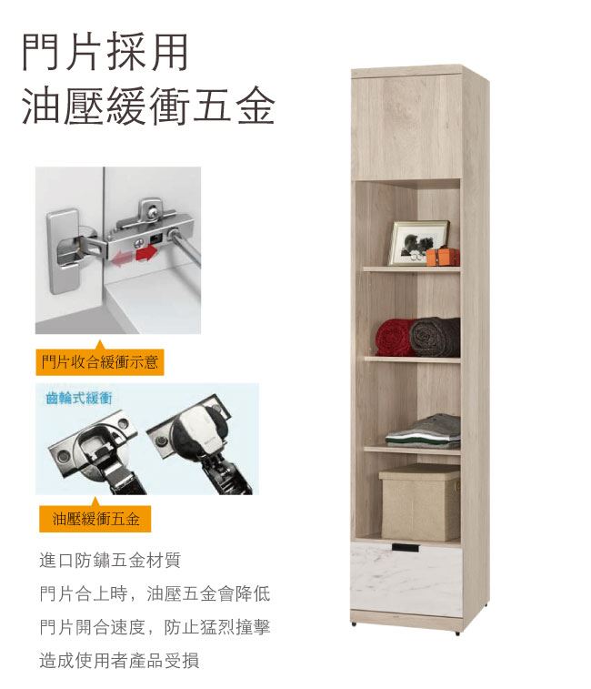 商品介紹 | 【綠家居】查森特 雙色1.5尺單門單抽中空衣櫃 橡木紋雙色系+現代簡約風格+安心材質製造,整體採用防蛀木心板+防潮耐磨腳座+防夾手緩衝門片五金+五金滑軌結構等安心材質製造,外層採用優利坦全包式耐磨&亮面噴漆處理搭配開門櫃+單抽屜+開放式收納等收納空間設計,全由專人配送到家,專業安心服務,替你省下更多時間! 【商品特色】 橡木紋雙色系+現代簡約風格+安心材質製造,使用放心+搭配居家更便利 採用防蛀木心板+防潮耐磨腳座+防夾手緩衝門片五金+五金滑軌結構等安心材質製造 開門櫃+單抽屜+開放式收納等收納空間設計 此商品不需要DIY組立,此商品為組立後之成品 品質保證、專業設計、貼心服務 全由專人配送到家,專業安心服務,替您省下更多時間 |