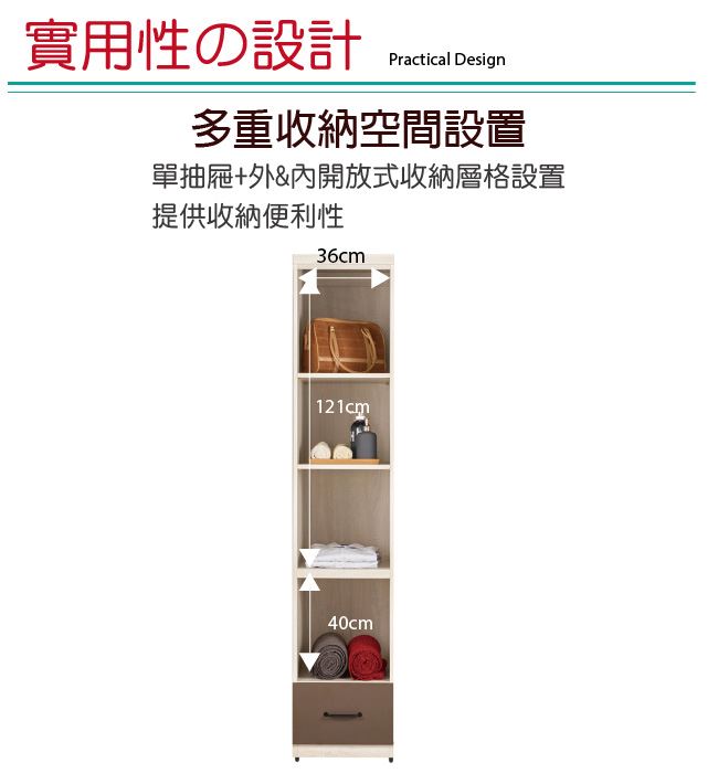 - 開門櫃+吊衣桿+單抽屜