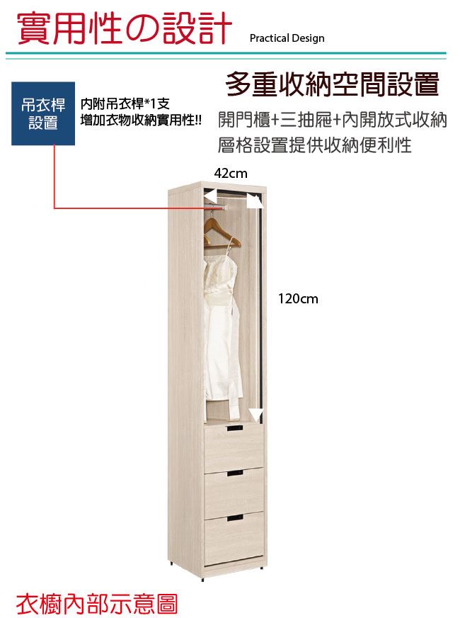 【綠家居】迪哈莉 橡木紋1.5尺單門三抽衣櫃