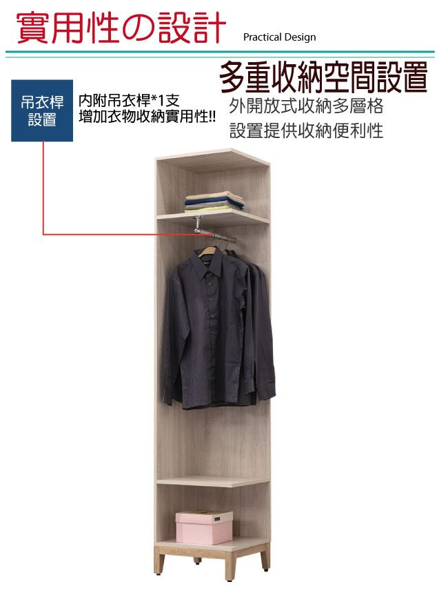 【綠家居】查德 時尚1.5尺開放式側邊衣櫃(二色可選)