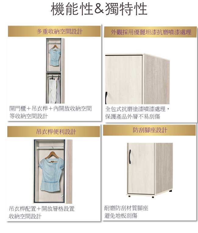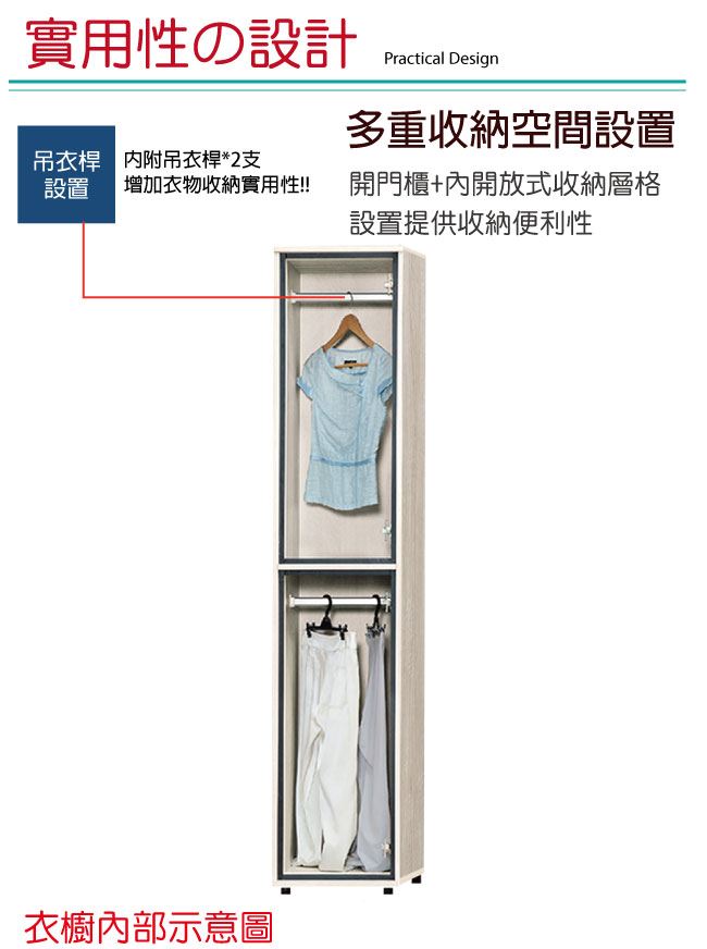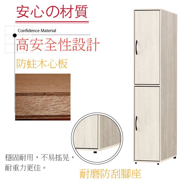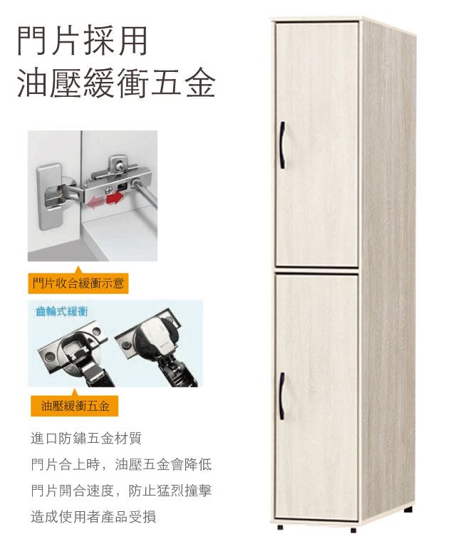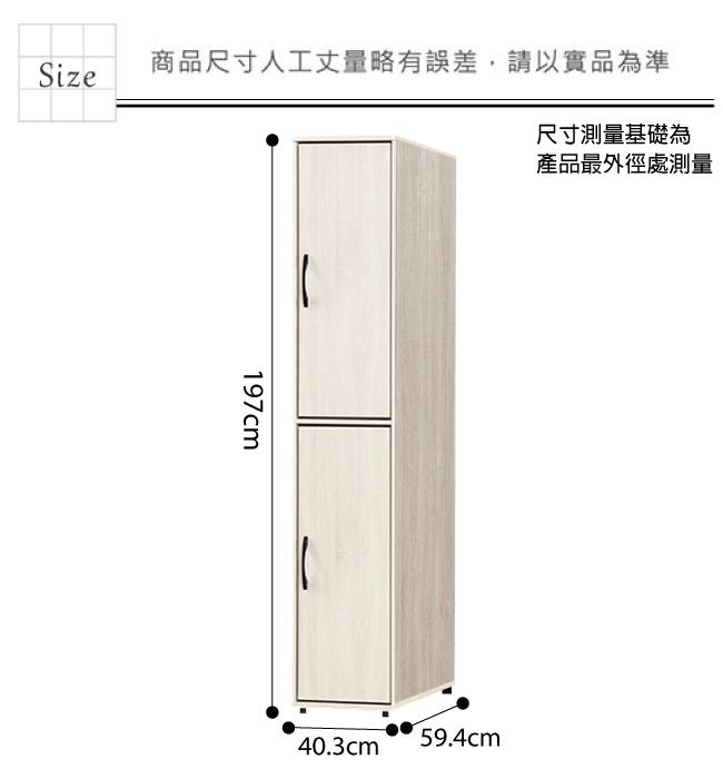 尺寸:(寬)40.3x(深)59.4(高)197/公分 ◆材質: 材質:防蛀木心板+防潮耐磨腳座+防夾手緩衝門片五金 噴漆:防潮耐磨噴漆處理