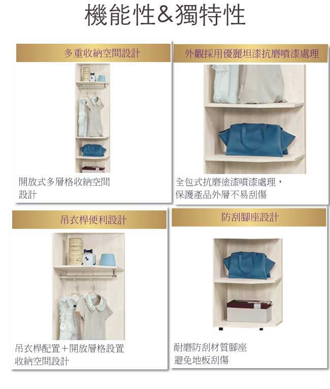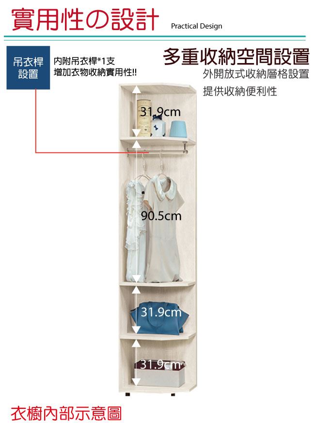 - ◆產品名稱:【綠家居】雅美1.5尺單吊桿開放側邊衣櫃/收納櫃