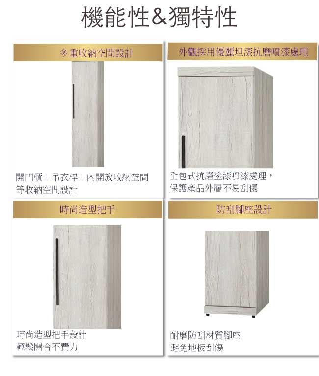 - ◆產品名稱:【綠家居】安比利1.3尺單門高衣櫃/收納櫃