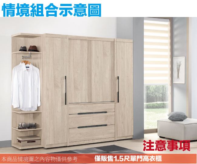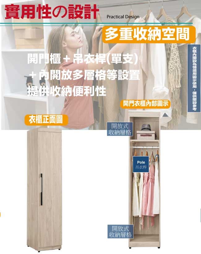 【綠家居】比克坡1.5尺單門單吊衣櫃/收納櫃(左&右二向開門方向可選)