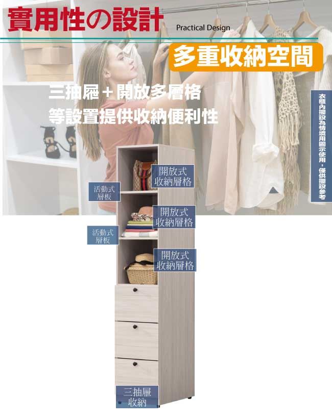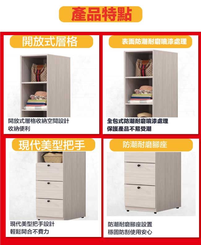 【綠家居】布金1.3尺半開放三抽衣櫃/收納櫃