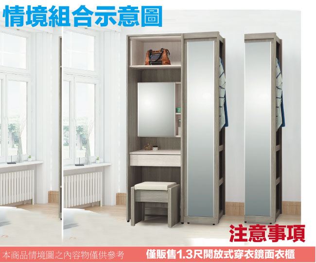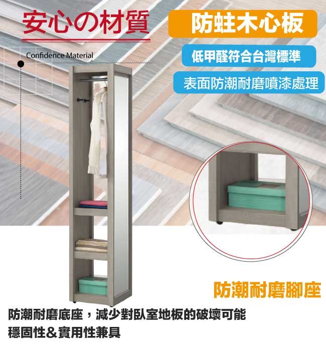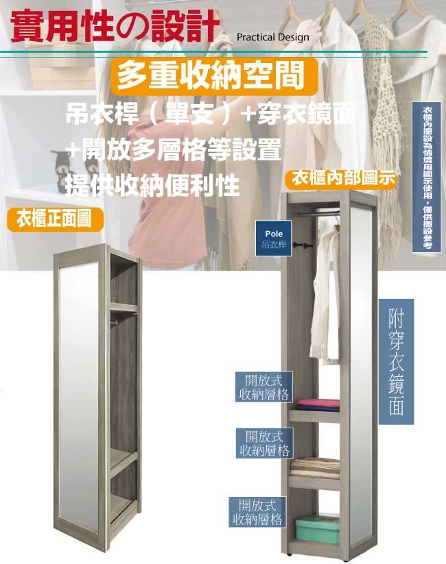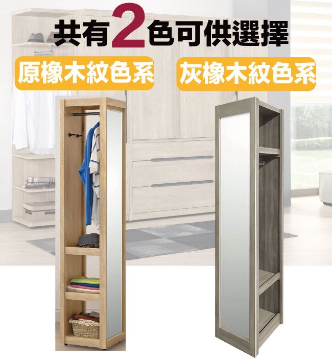 【綠家居】邁克可1.3尺全身鏡面側邊衣櫃/收納櫃(二色可選)
