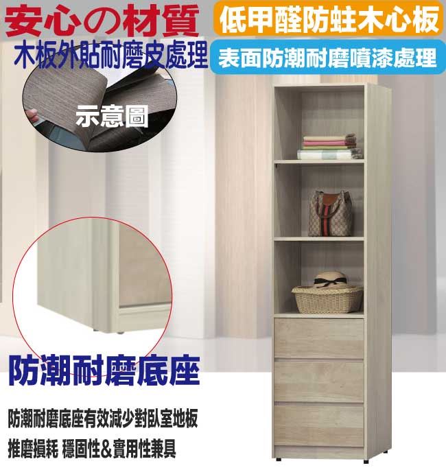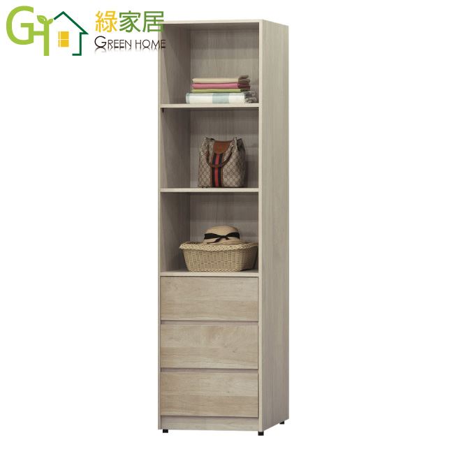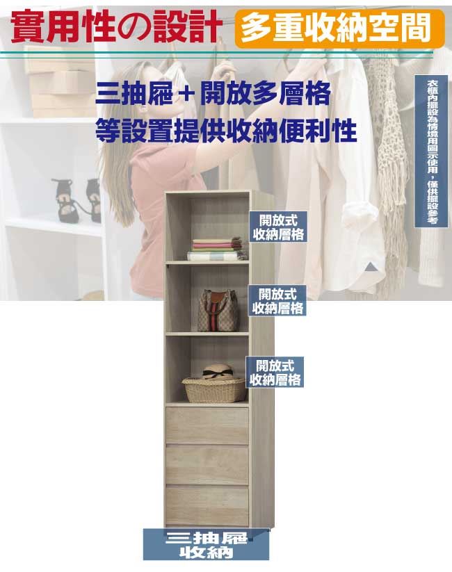 【綠家居】戈壁雙色1.9尺開放式三抽側邊櫃/衣櫃
