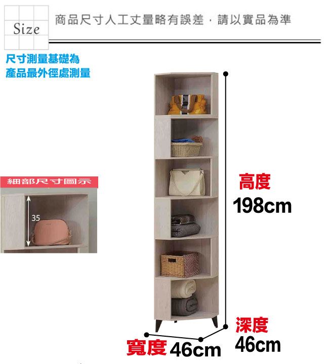 材質 | ◆產品名稱:【綠家居】達斯1.3尺開放式衣櫃 尺寸:(寬)46x(深)46(高)198/公分 ◆材質: 材質:防蛀木心板+烤漆金屬腳座 噴漆:防潮耐磨噴漆處理 |