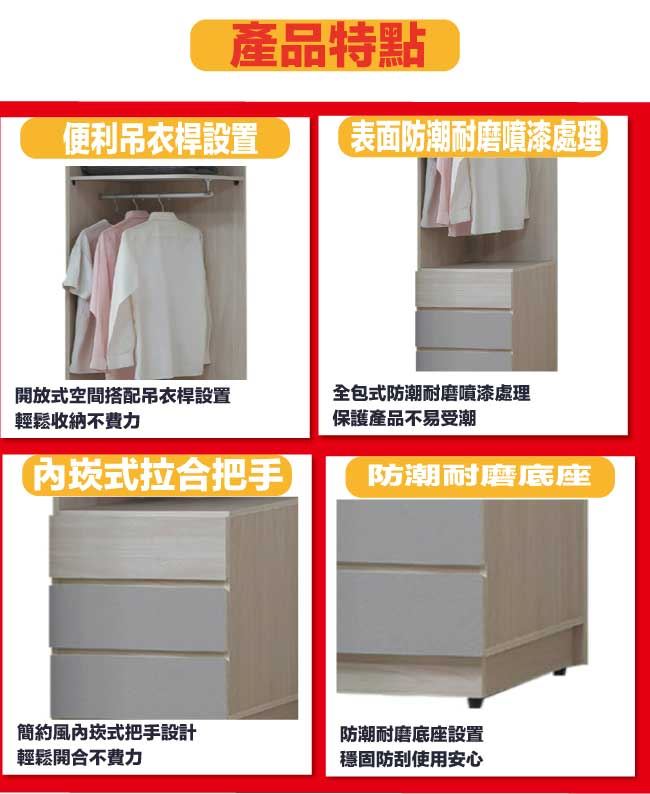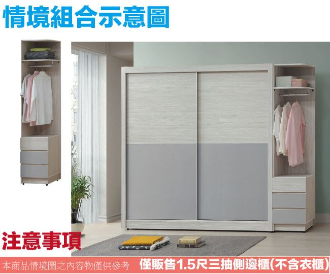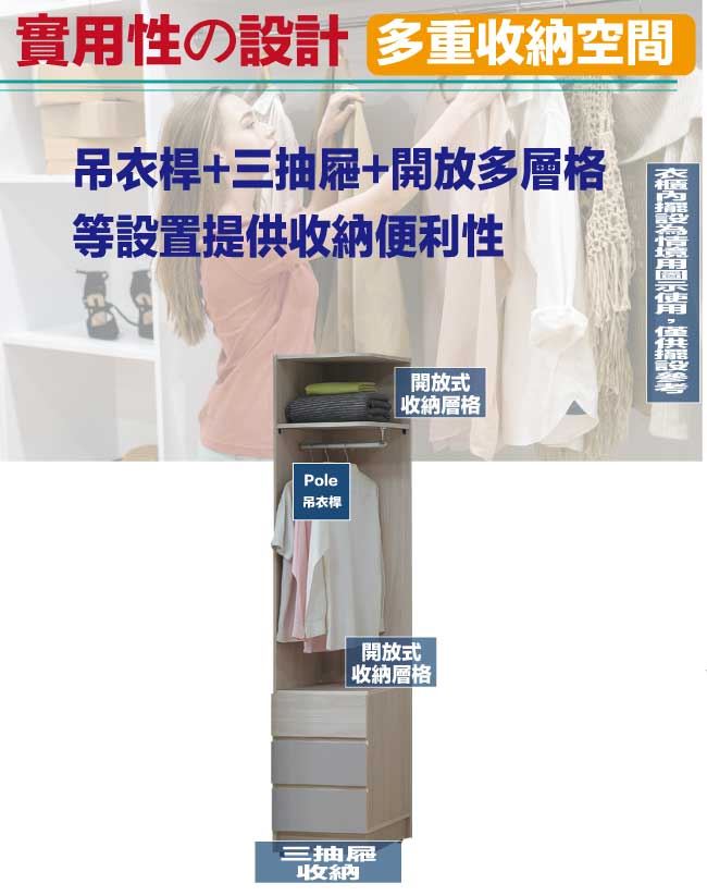 【綠家居】瑞瑟雙色1.5尺開放三抽側邊衣櫃