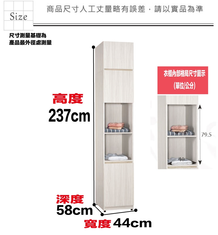 - ◆產品名稱:【綠家居】寶亞1.5尺開門中空加高衣櫃組合
