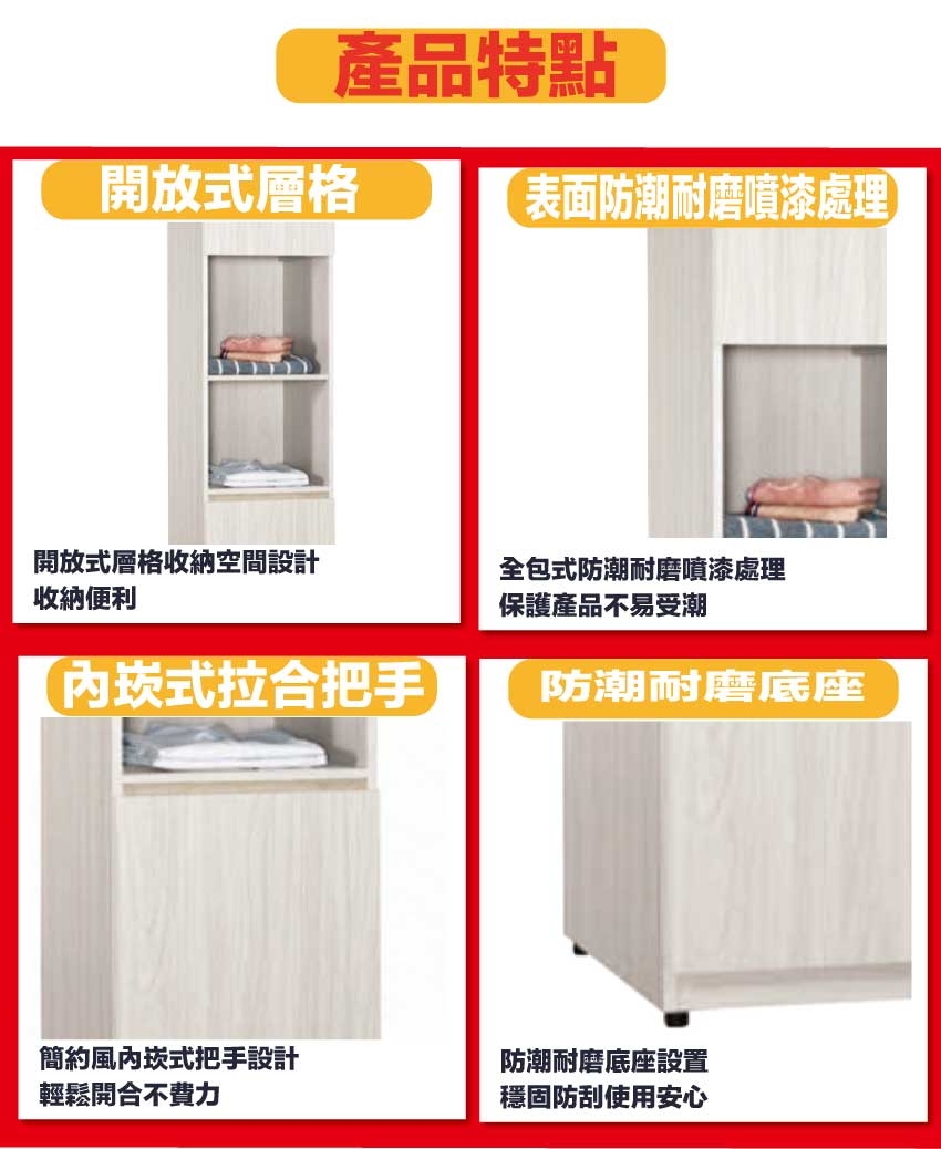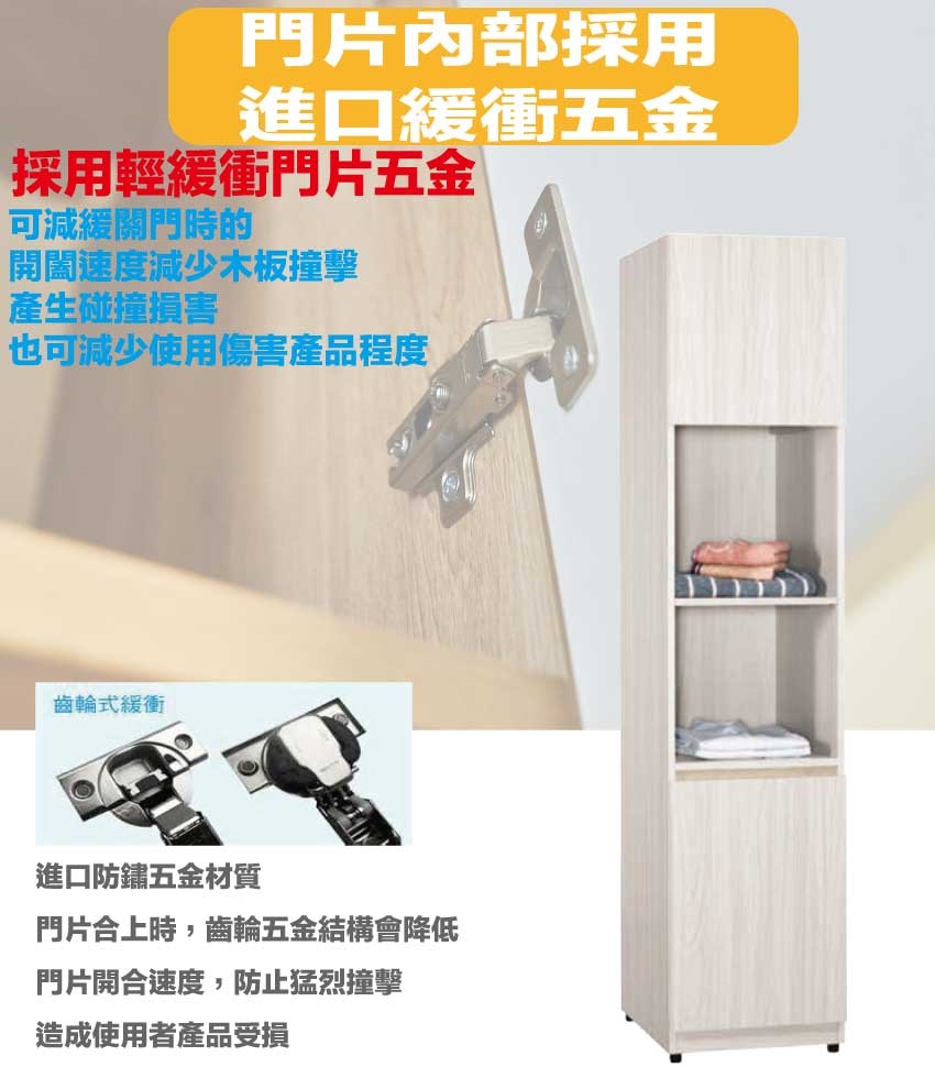 材質:防蛀木心板+防潮耐磨腳座+防夾手緩衝門片五金