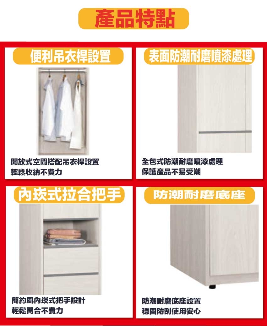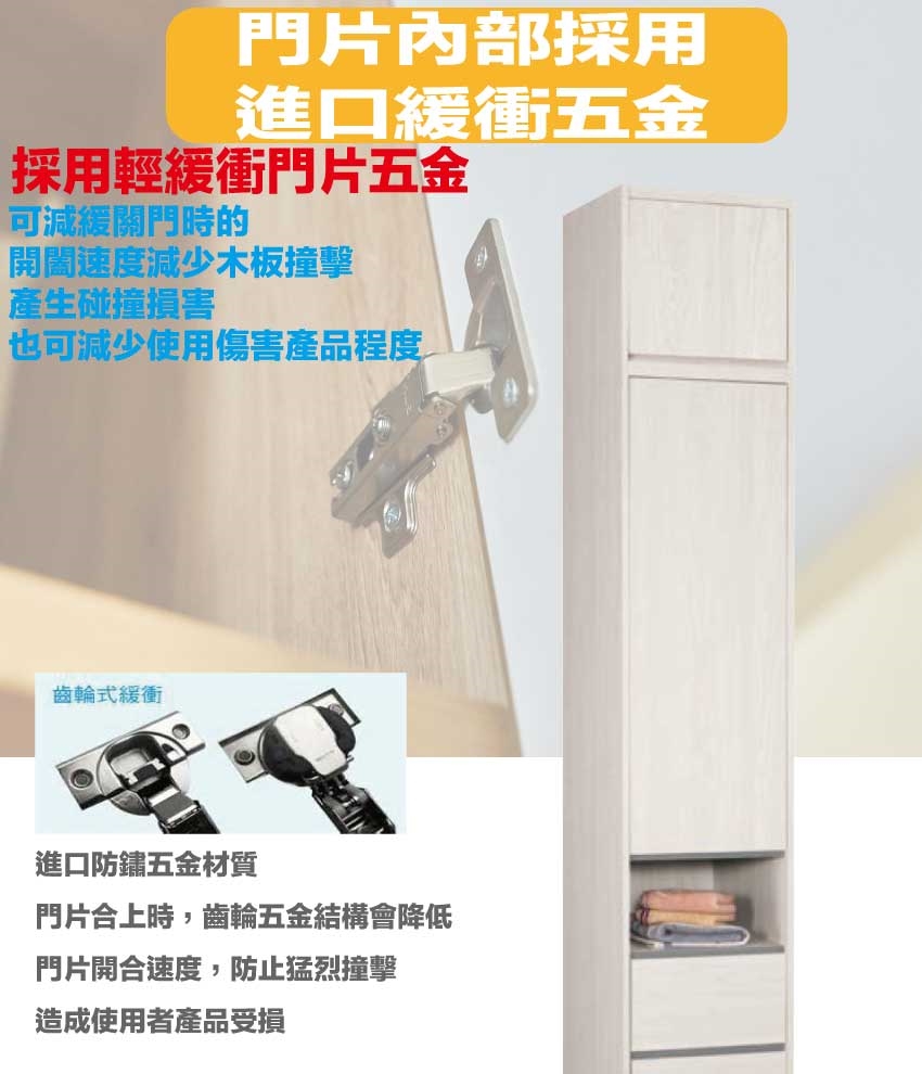 材質:防蛀木心板+防潮耐磨腳座+防夾手緩衝門片五金+五金滑軌結構