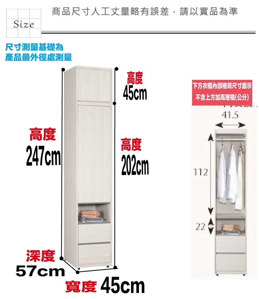 - ◆產品名稱:【綠家居】華爾1.5尺二門二抽中空加高衣櫃