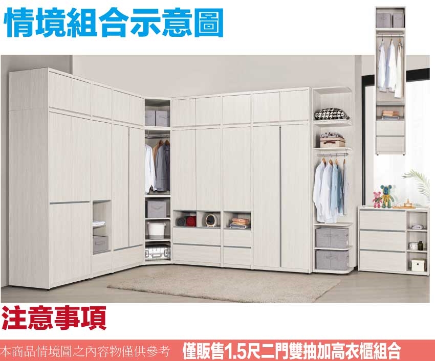【綠家居】華爾1.5尺二門二抽中空加高衣櫃