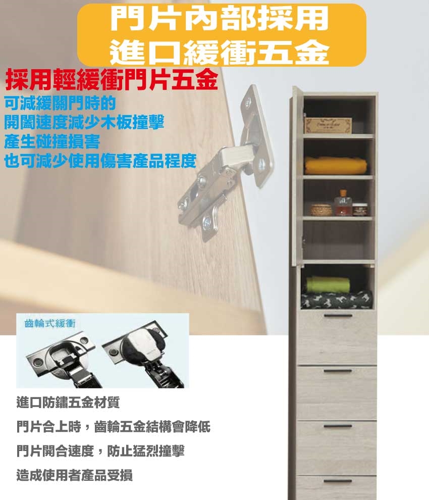 材質:防蛀木心板+防潮耐磨腳座+五金滑軌結構+防夾手緩衝五金