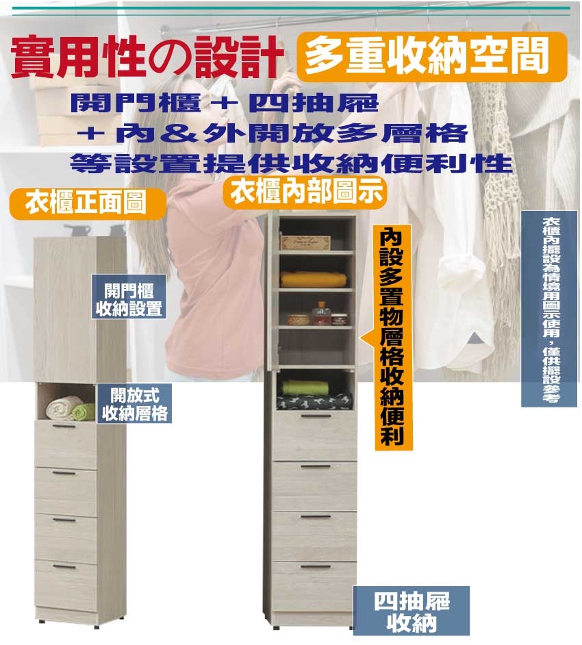 【綠家居】夏斯1.2尺單門四抽中空衣櫃