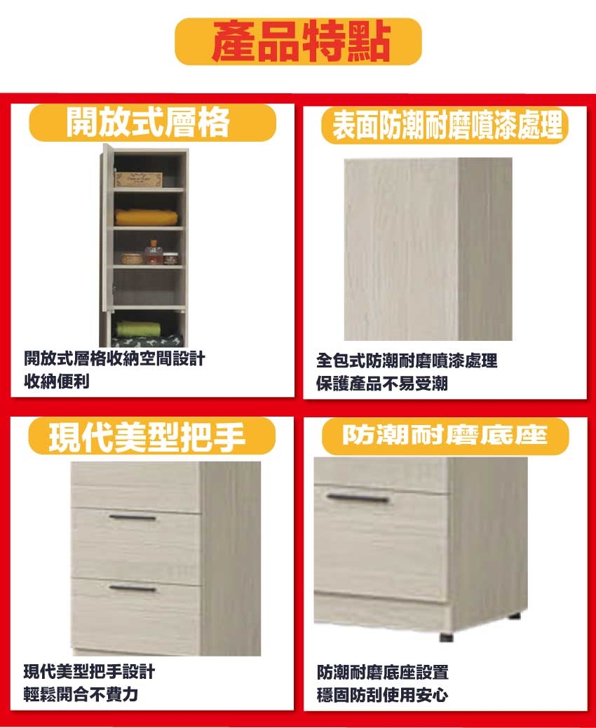 採用防蛀木心板+防潮耐磨底座+五金滑軌結構+防夾手緩衝五金等安心材質製造