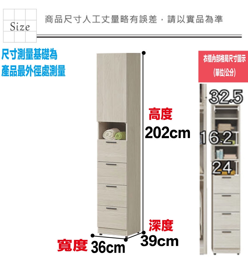 - ◆產品名稱:【綠家居】夏斯1.2尺單門四抽中空衣櫃