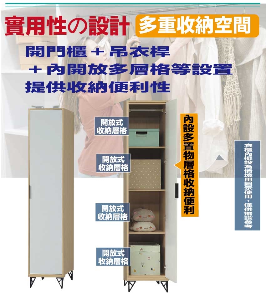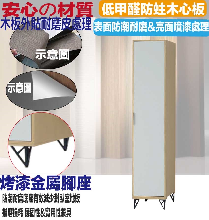 ★偏遠地區需額外加收運費,下標請先問與答詢問★ ★下訂前注意 由於商品流動較快,下訂前請先詢問是否有貨在下訂喔~★ 【綠家居】普伊斯1.5尺單門鐵腳衣櫃(二色可選) 二色可選+安心材質製造,使用放心+搭配居家更便利,採用防蛀木心板+烤漆五金腳座+防夾手緩衝五金等安心材質製造 ,外層採用防潮耐磨噴漆處理搭配採用開門櫃+內開放層格等收納空間設計,全由專人配送到家,專業安心服務,替你省下更多時間!