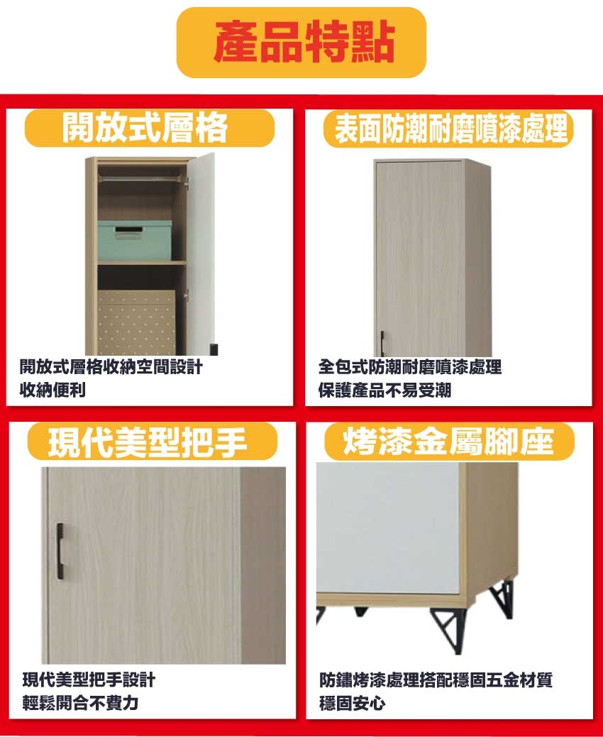 材質:防蛀木心板+烤漆五金腳座+防夾手緩衝五金