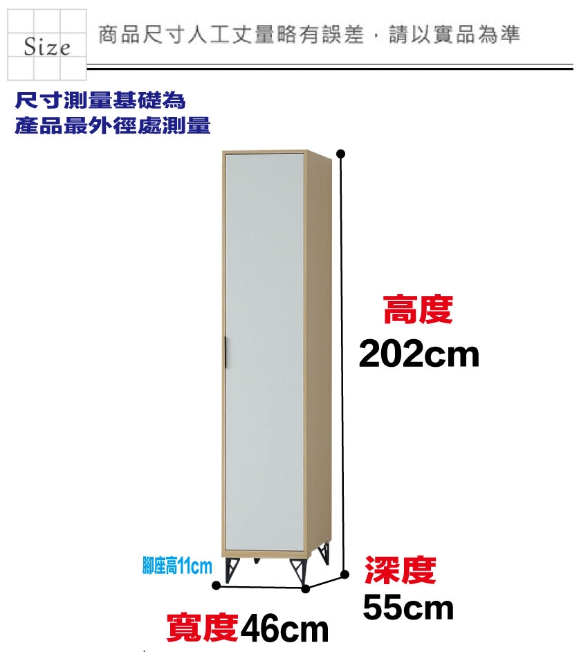 - ◆產品名稱:【綠家居】普伊斯1.5尺單門鐵腳衣櫃(二色可選)