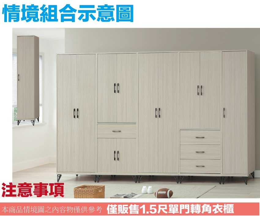 - 25GY44-46325原雙色&白榆1.5單門衣櫃